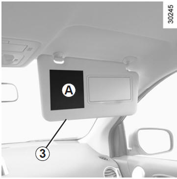 Les marquages sur la planche de bord et les étiquettes A sur chaque coté du pare‑soleil passager 3 (à l'exemple de l'étiquette ci-dessus), vous rappellent ces instructions.