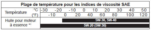 *1 Voyez les indices de viscosité SAE recommandés, en page suivante.