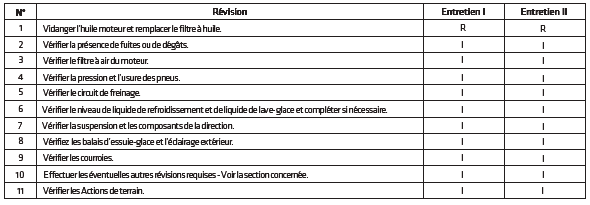 Entretien i - utiliser entretien i pour la première révision ou si entretien ii a déjà été effectué.