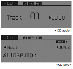 Mode MP3 CD, USB : FLD.RDM à l'écran.